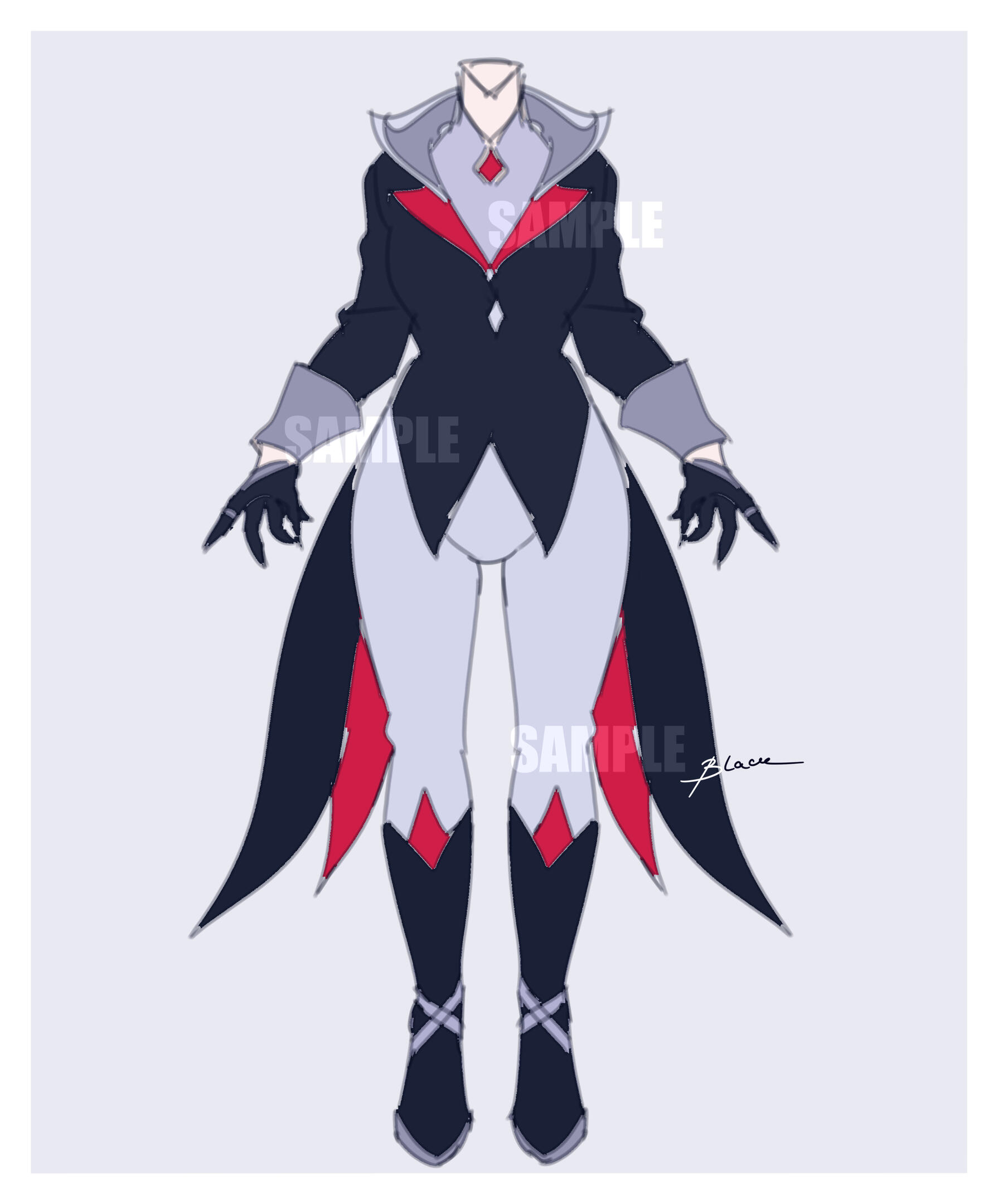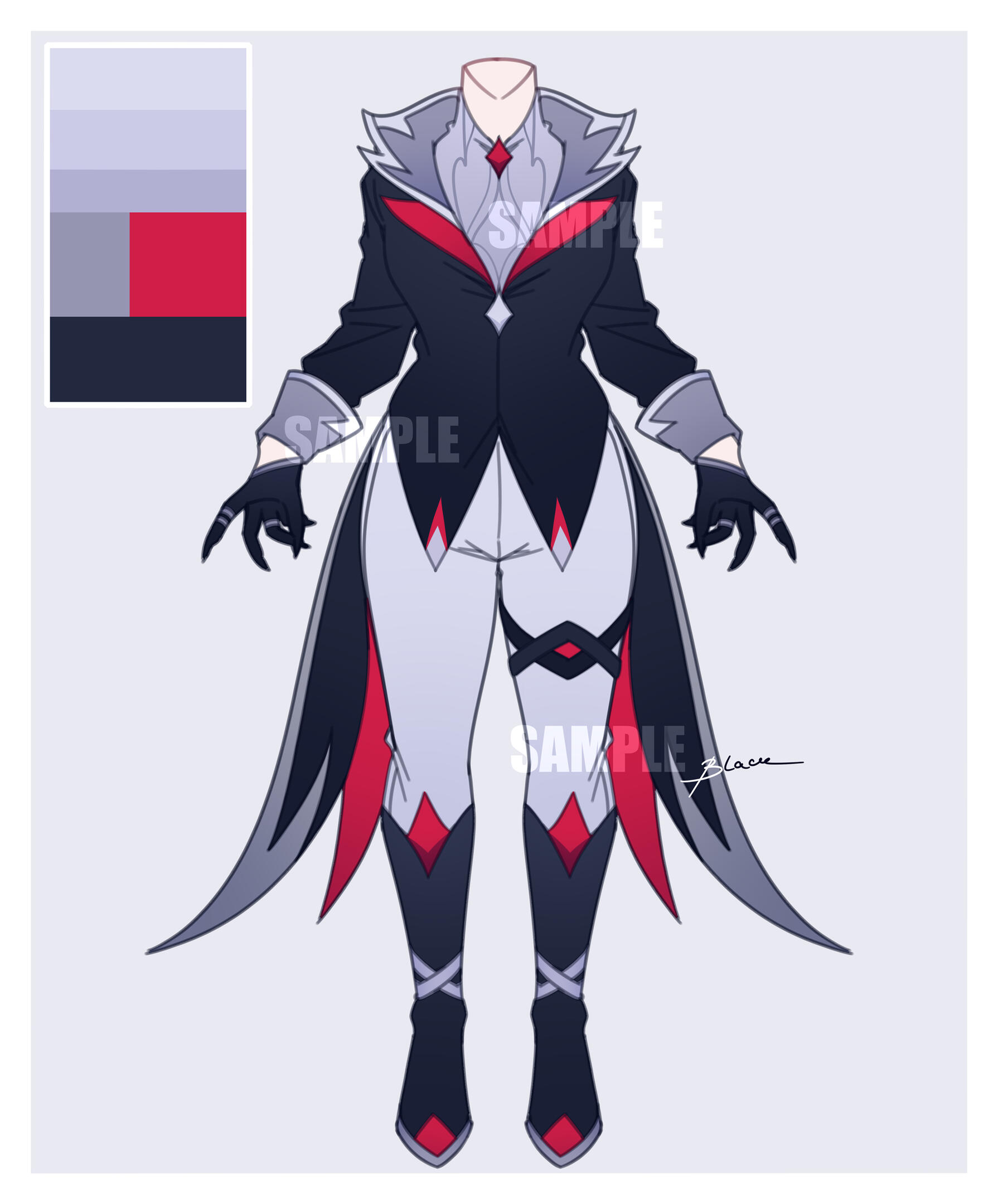 OPTION 4 (3 flatcolor sketches that you are allowed to pick from AND one final design): Rendered (sketch) custom art — $85+. Extra art with this outfit on your oc — +$70